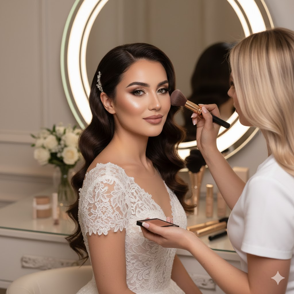 Imagine your wedding is in April with outdoor events. A makeup artist might choose long-wear foundation, waterproof eye products, and light shimmer highlighter so it looks fresh in pictures and lasts through outdoor heat. This little planning step makes a big difference on the day itself.